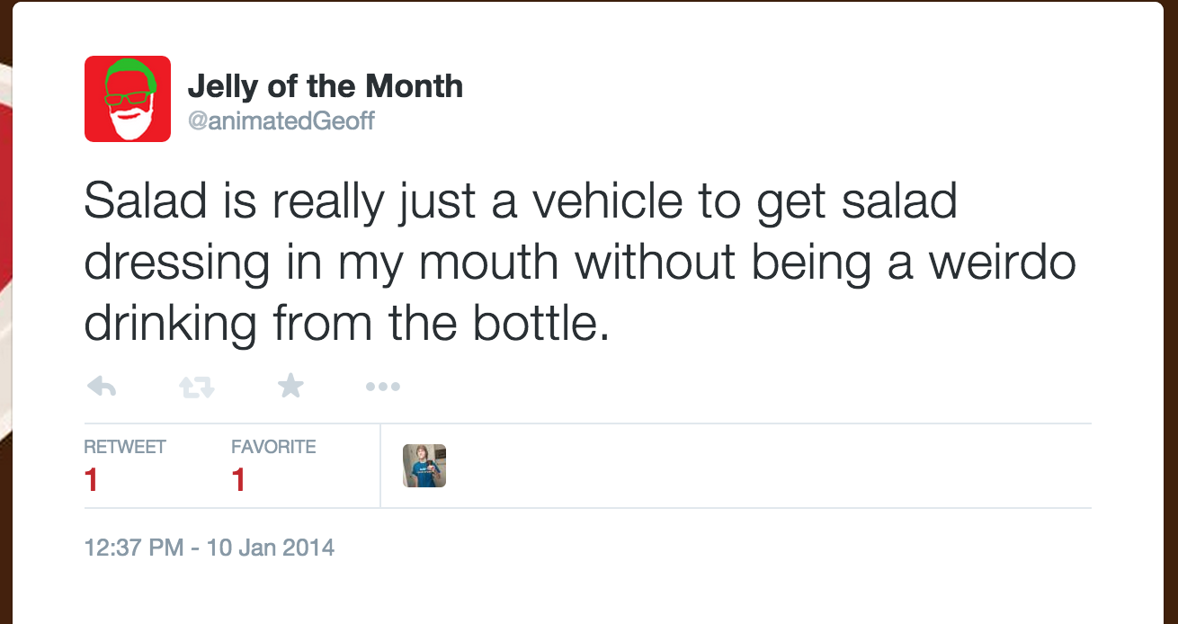 It might be a little premature, what with about a week still left in the year, but I'm awake and sober right now and I don't expect that to last. So, here it is, my top list for 2014. I decided to dig through all the tweets I read over the year and pick out my favorite ones to highlight right here on my very own blog. We still say "blog," right?